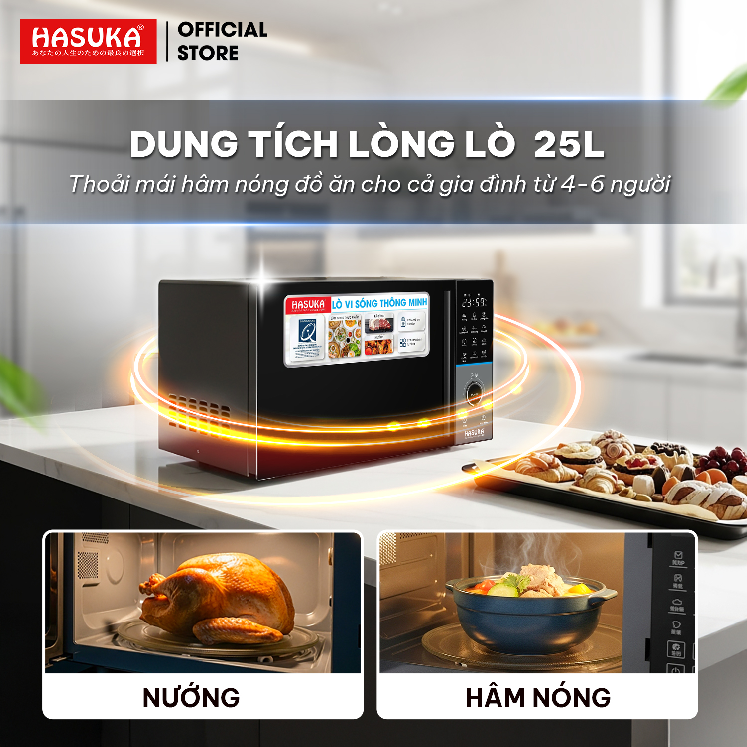 Lò vi sóng HASUKA HSK-295 với dung tích 25 lít có thiết kế gọn gàng đáp ứng tốt nhu cầu của gia đình 4 - 6 thành viên.