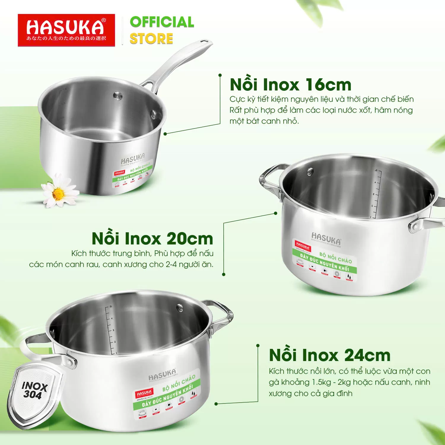 BỘ NỒI CHẢO CAO CẤP HASUKA HSK - 382