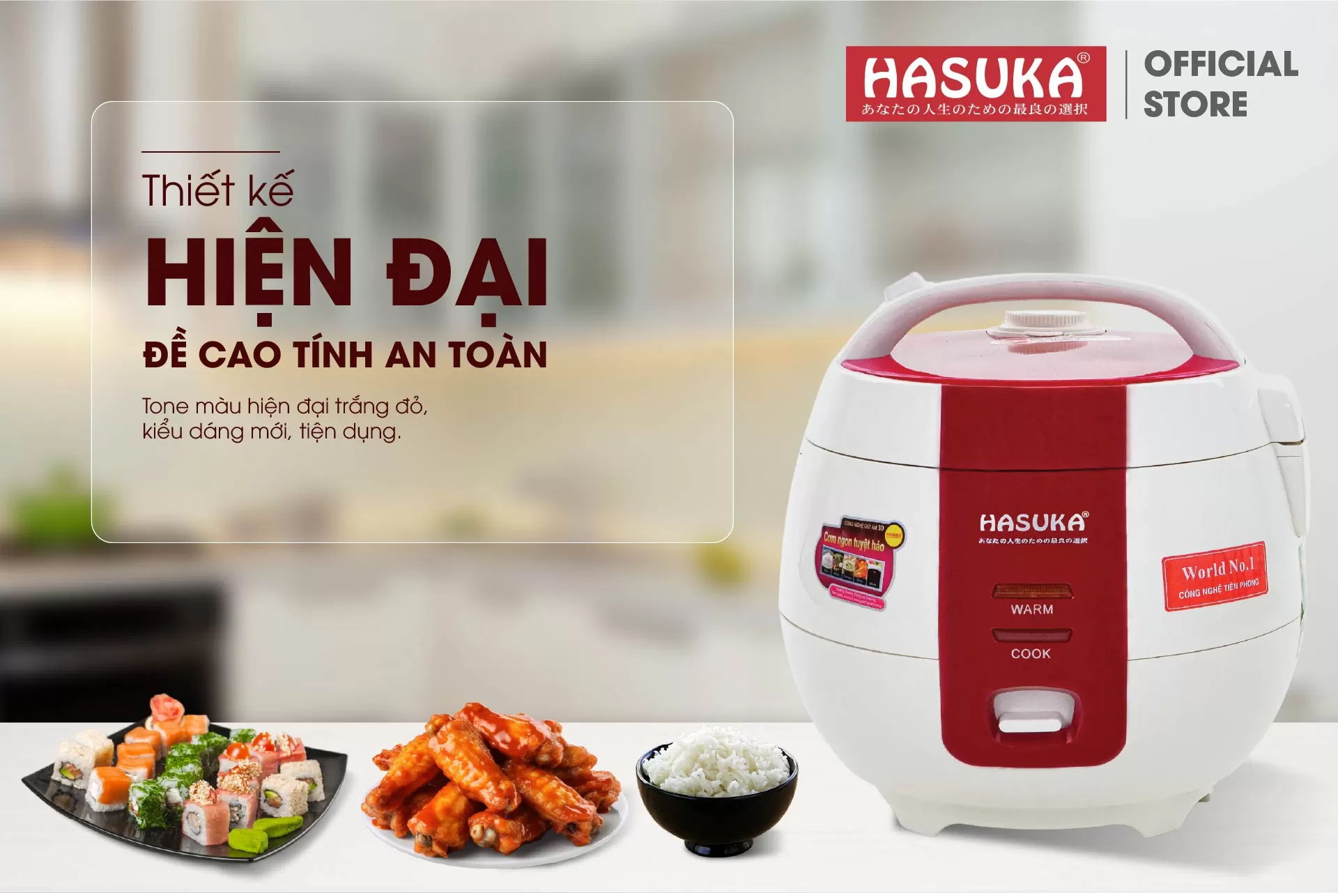 Nồi cơm điện HASUKA HSK-801 được thiết kế với tông màu hiện đại trắng - đỏ.