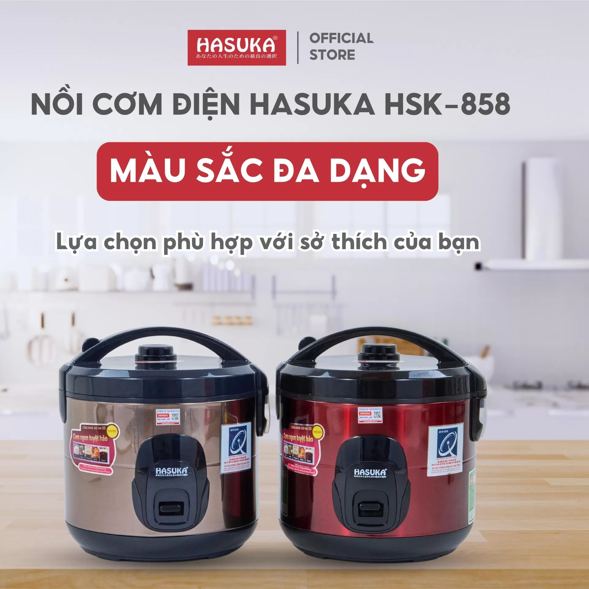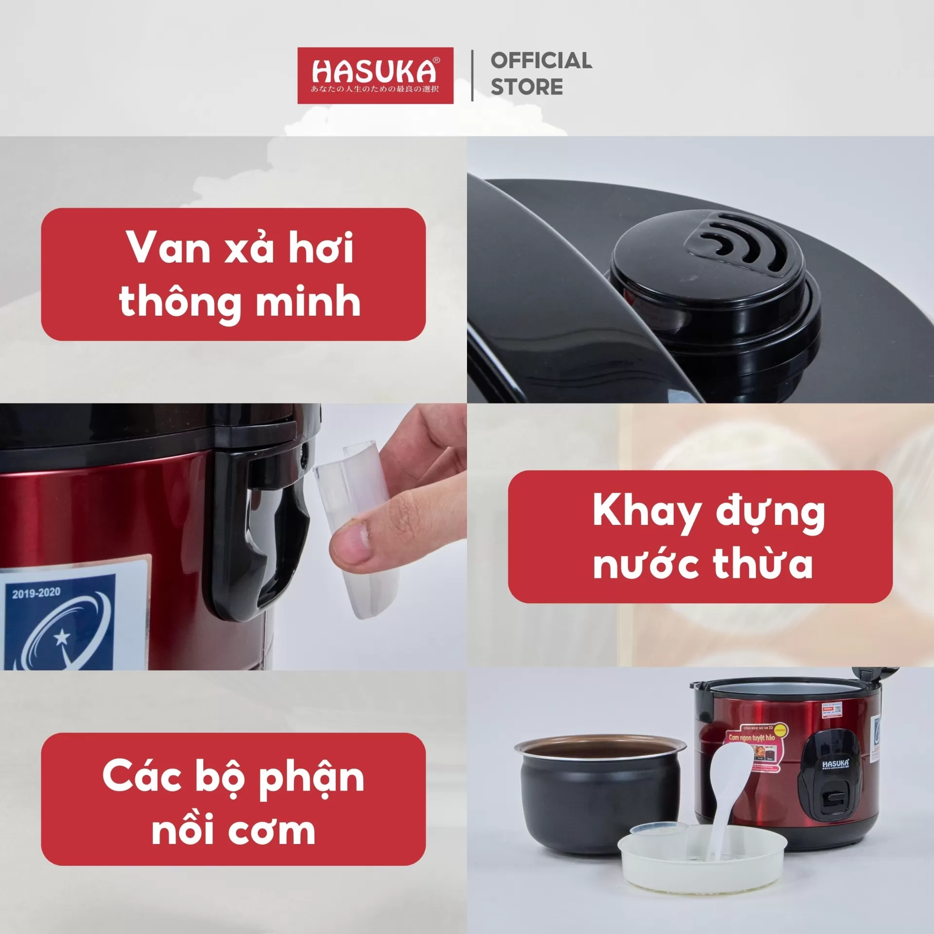 NỒI CƠM ĐIỆN 1,8 LÍT HASUKA HSK-823 (Đỏ - 900W - 1,8L)
